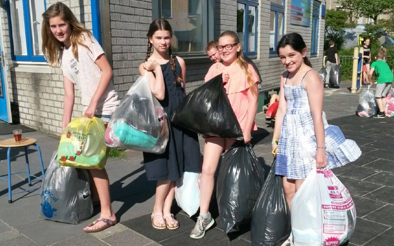 "Wat een super initiatief zeg! Wij vonden deze actie uitermate geschikt om geld in te zamelen voor ons eindfeest wat we op 1 juli 2016 gaan vieren. Omdat we eigenlijk geen groot budget hebben om hier een leuk feest van te maken voor iedereen kwam er een ouder met dit idee. Geweldig! Er is 640 kg kleding ingezameld."